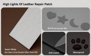 Self-adhesive leather repair patch quickly repairs tears, holes, burns, scratches and other defects in leather. Not only can it restore old leather furniture, it’s also a good choice for use as a furniture film. The self-adhesive leather patch adapts well to a variety of object surfaces and is easy to use: 1. make sure the tear area is clean and dry 2. cut out the desired shape and size. 3. stick the patch firmly in place, pressing firmly to stick firmly. Your furniture will have a new look.