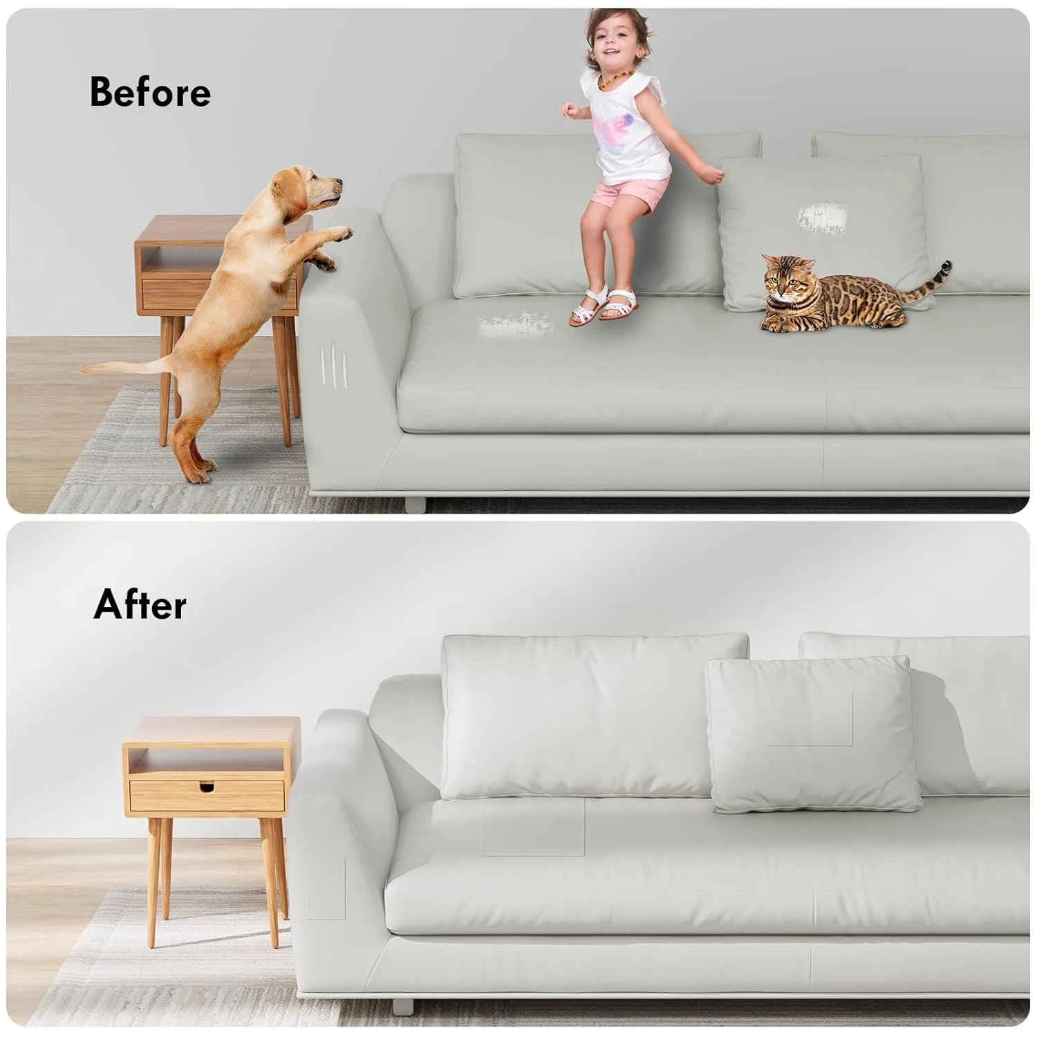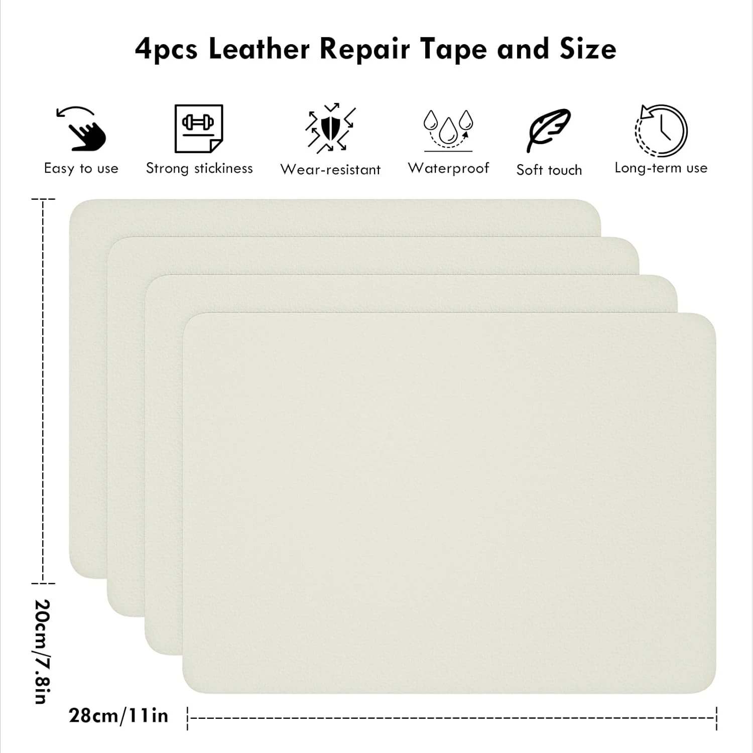 Each set includes four 7.8 x 11-inch leather repair patches, perfect for addressing a variety of damages—tears, scratches, holes, and fading—on leather and vinyl items. Suitable for repairing car seats, furniture, sofas, couches, handbags, jackets, and more, these patches restore your items to a like-new appearance. - Simple Application: