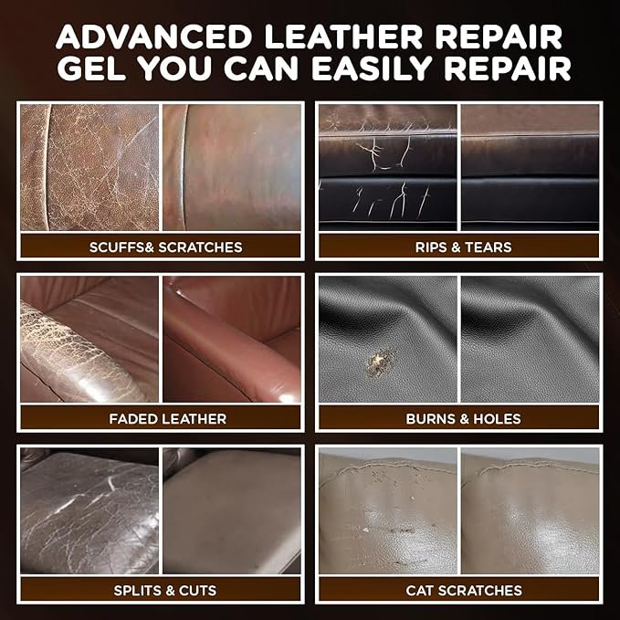 - Leather Repair Kit for Furniture: This versatile kit is perfect for all your leather and vinyl repair needs. Whether it’s your favorite couch, car interior, jacket, or shoes, it effectively removes unsightly scratches, tears, and scuffs, restoring your items with ease.